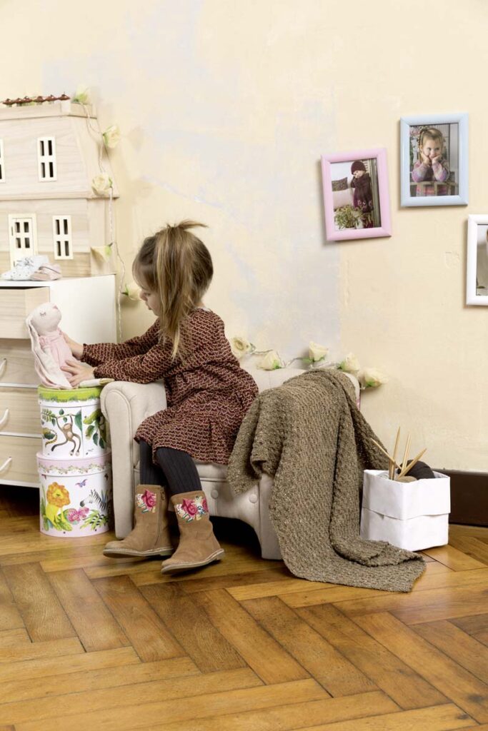 Strickanleitung in den Sprachen DE, FR, NL, EN.