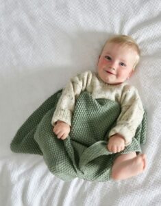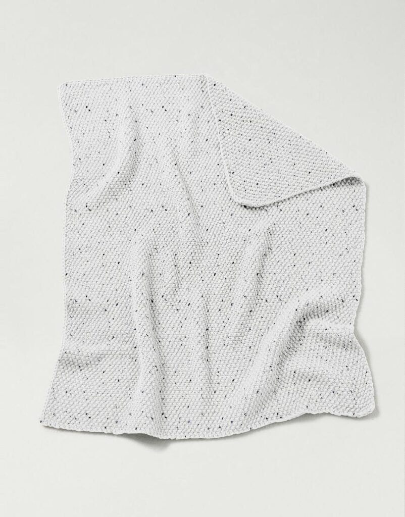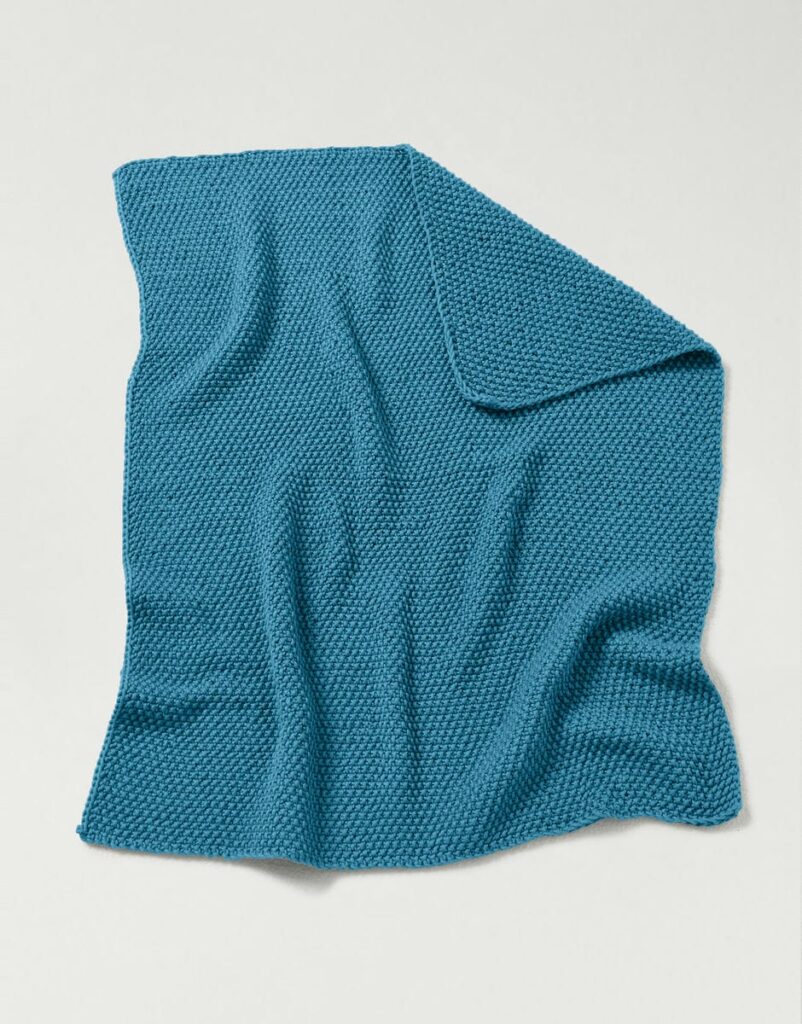 Diese bezaubernde Babydecke wird mit 5mm Nadeln und unserer superweichen Shiny Happy Cotton gestrickt und hält die lieben Kleinen mit ihrer weichen Perlmusterstruktur kuschelig warm.