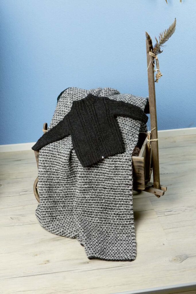 Strickanleitung in den Sprachen DE, FR, NL, EN.