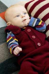 Strickanleitung in den Sprachen DE, FR, NL, EN.