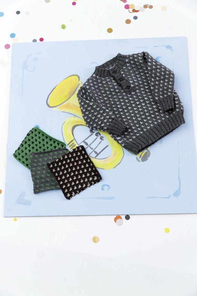 Strickanleitung in den Sprachen DE, FR, NL, EN.