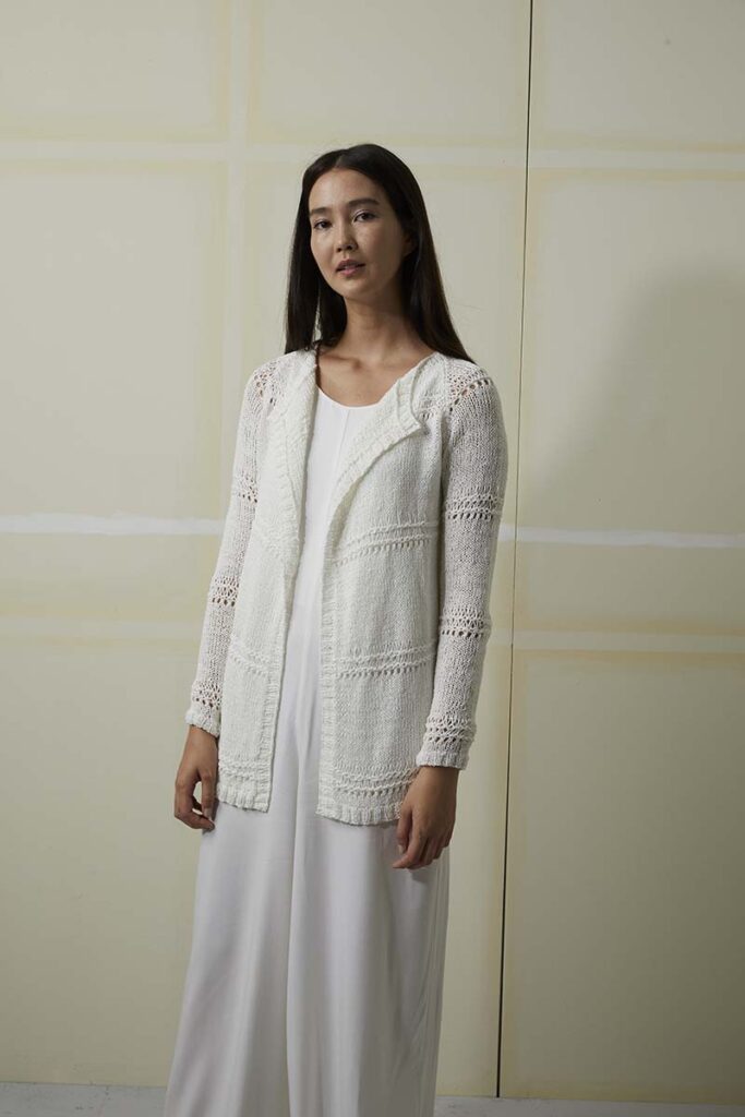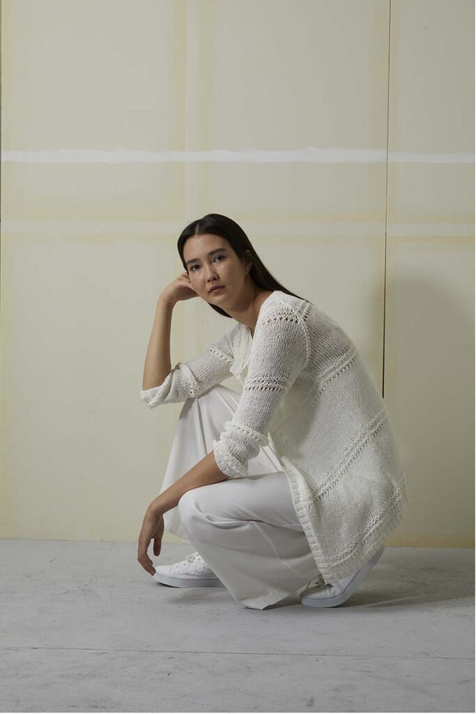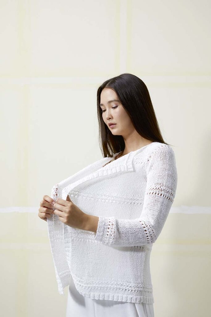 Strickanleitung in den Sprachen DE, FR, NL, EN.