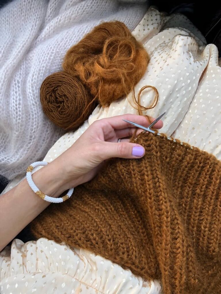 Es wird mit 3 Fäden gestrickt (1 Faden Sunday und 2 Fäden Tynn Silk Mohair) und der Garnverbraucht gibt die totale Garnmenge am