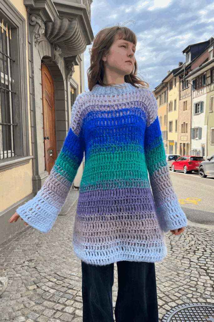 Dieses einzigartige Häkelkleid ist ein absoluter Hingucker. Gehäkelt wird es mit Doppel-Stäbchen. Die Anleitung wurde für die Grösse XS/S entwickelt. Allerdings ist die Grösse leicht individuell anpassbar mit den Massen der Maschenprobe