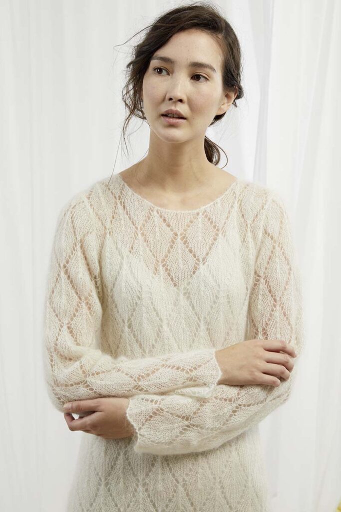 Strickanleitung in den Sprachen DE, FR, NL, EN.