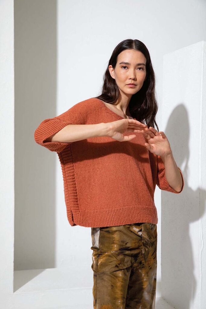 Strickanleitung in den Sprachen DE, FR, NL, EN.