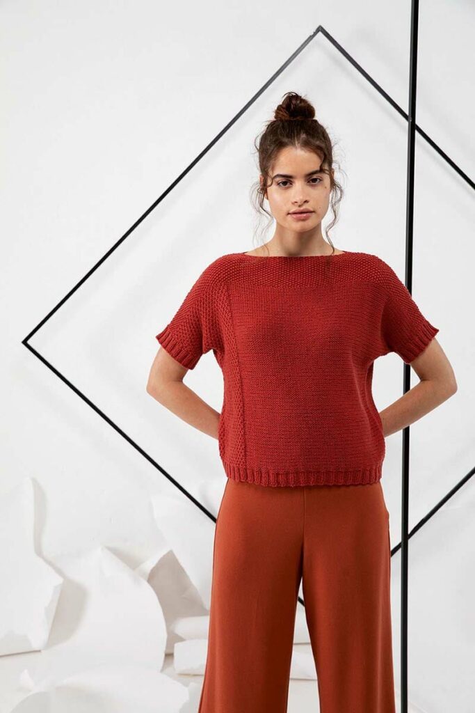 Strickanleitung in den Sprachen DE, FR, NL, EN.