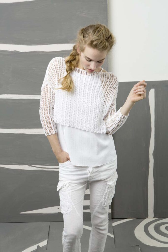 Strickanleitung in den Sprachen DE, FR, NL, EN.