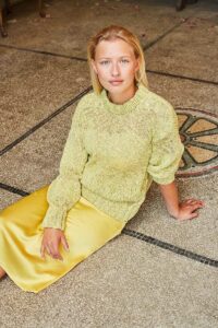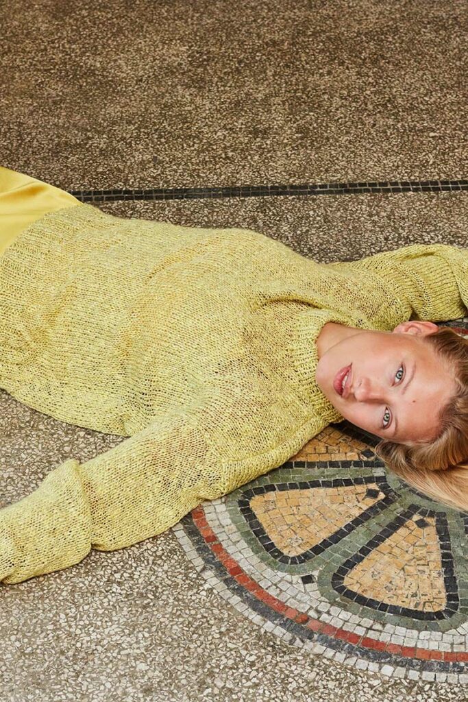 Ein wunderbar schlichter Pullover, der durch seine Farbe unwiderstehlich ist. Das Leinen ist atmungsaktiv, so dass es Ihnen im Sommer nie zu heiss wird, um ihn zu tragen. Die Farbe verleiht dem Pullover einen leicht goldenen Look, was ihn sehr luxuriös macht.