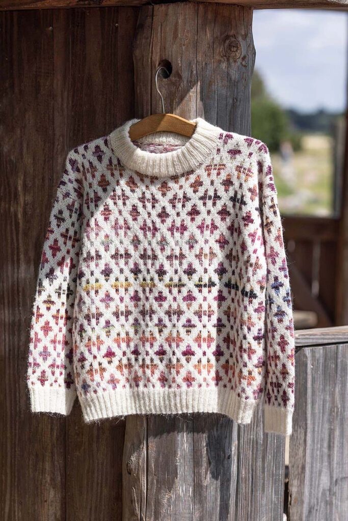 Wir stellen vor: Nordic Heaven von Sanne Lousdal ein Jacquardpullover, der mit jeder Masche das nordische Erbe verkörpert. Gestrickt mit einem einfarbigen und einem mehrfarbigen Garn, wird dieses auffällige Stück in Runden gestrickt. Für den oberen Teil besteht die Möglichkeit flach oder in Runden zu stricken, beide Varianten sind in der Anleitung enthalten. Das geometrische Jacquard-Design lässt sich von den klaren Linien und Formen der nordischen Landschaften inspirieren, welche die faszinierende Schönheit Skandinaviens widerspiegeln.