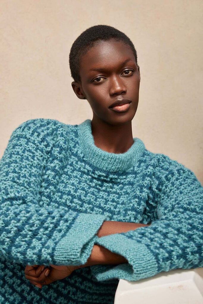Every stitch, color choice, and moment spent creating tells a story within the TIDAL STORIES sweater. Its two-color mosaic design reflects the ebb and flow of inspiration, much like the ever-changing tides etching patterns into the sand.