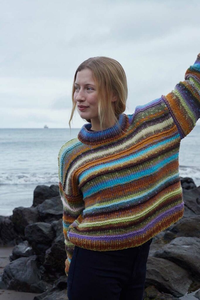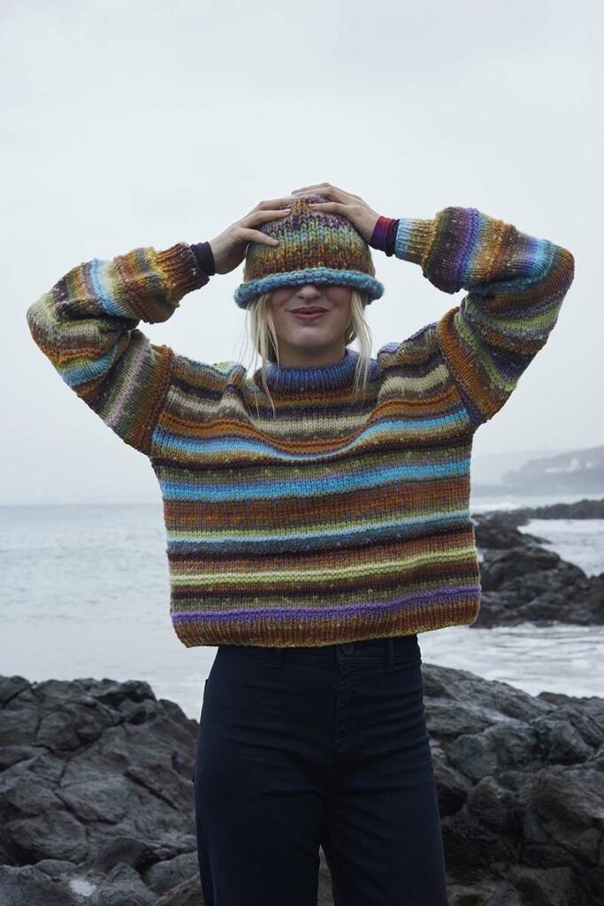 If you have a positive attitude then happiness awaits you. This lovely «this is what I want to snuggle up in» sweater is a fantastic sweater that you just want to knit in all colors. In which color will you make the «FIND JOY» sweater first?