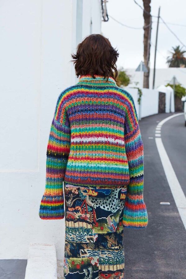 This sweater simply is a must have! A great topdown striped sweater in our favorite colors. Whether you opt for a cute look or feeling super empowered in it this sweater does it all. Of course, you could also turn into a very bad babe. But one thing is for sure, it would look gorgeous on you