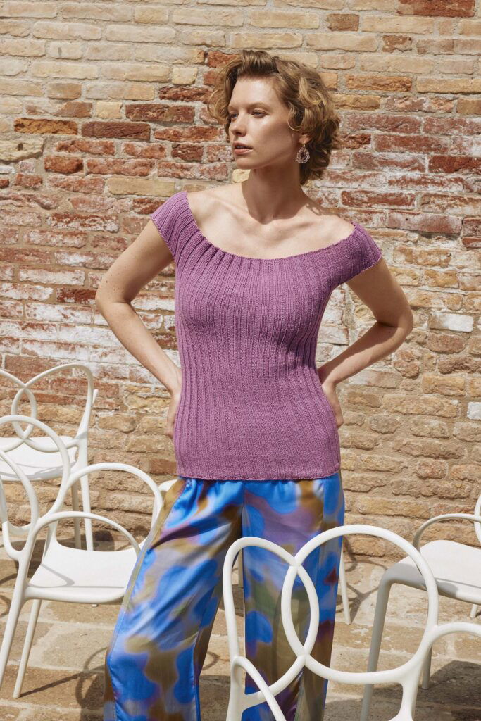 Sometimes a shift in shape brings a shift in feeling. With its sculpted ribs and off-the-shoulder grace, NEW PERSPECTIVE invites you to see your knitting, and yourself, from a different angle.