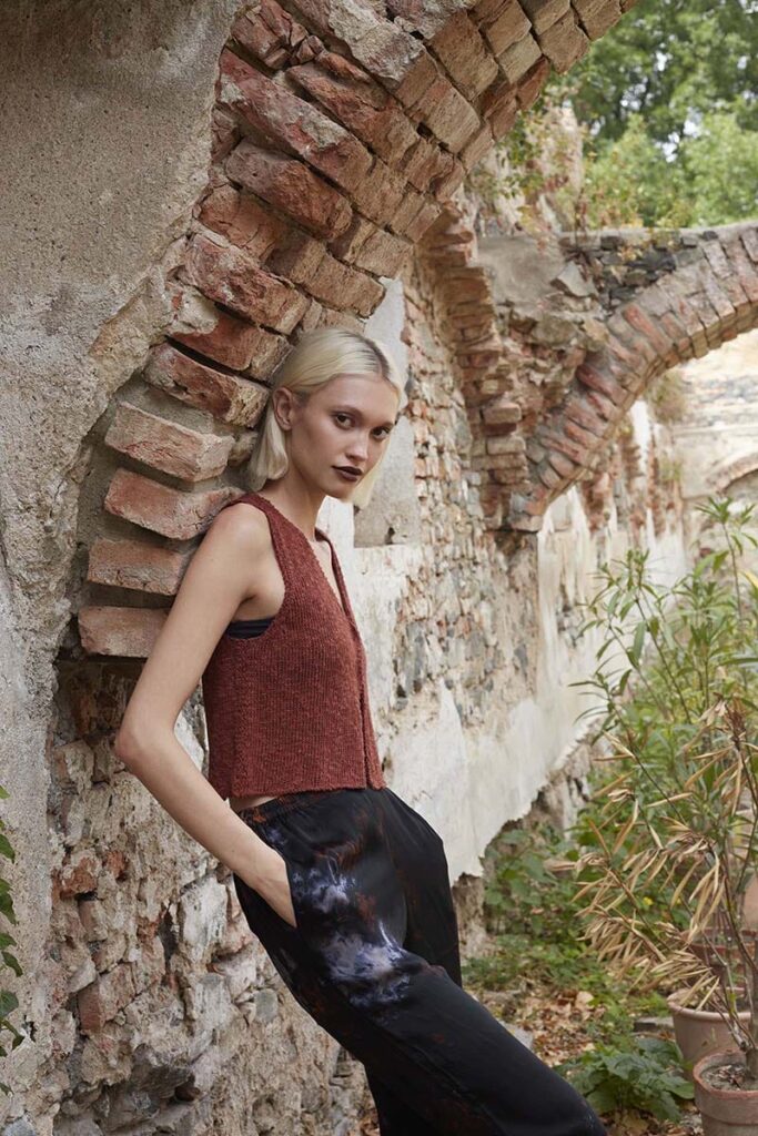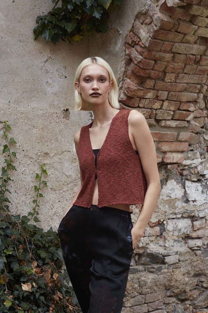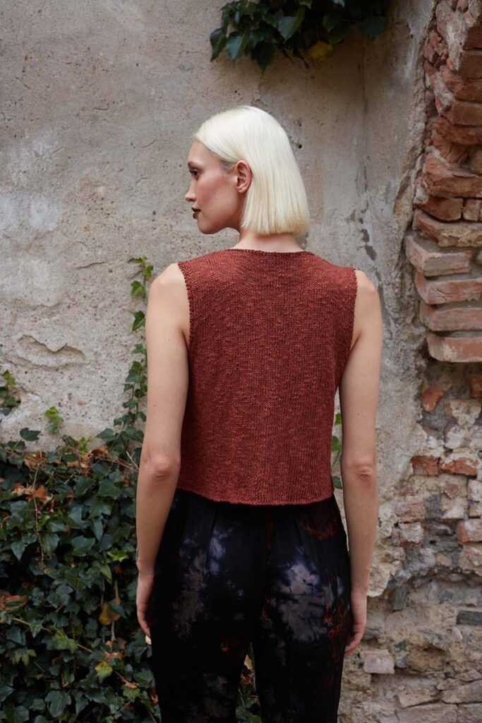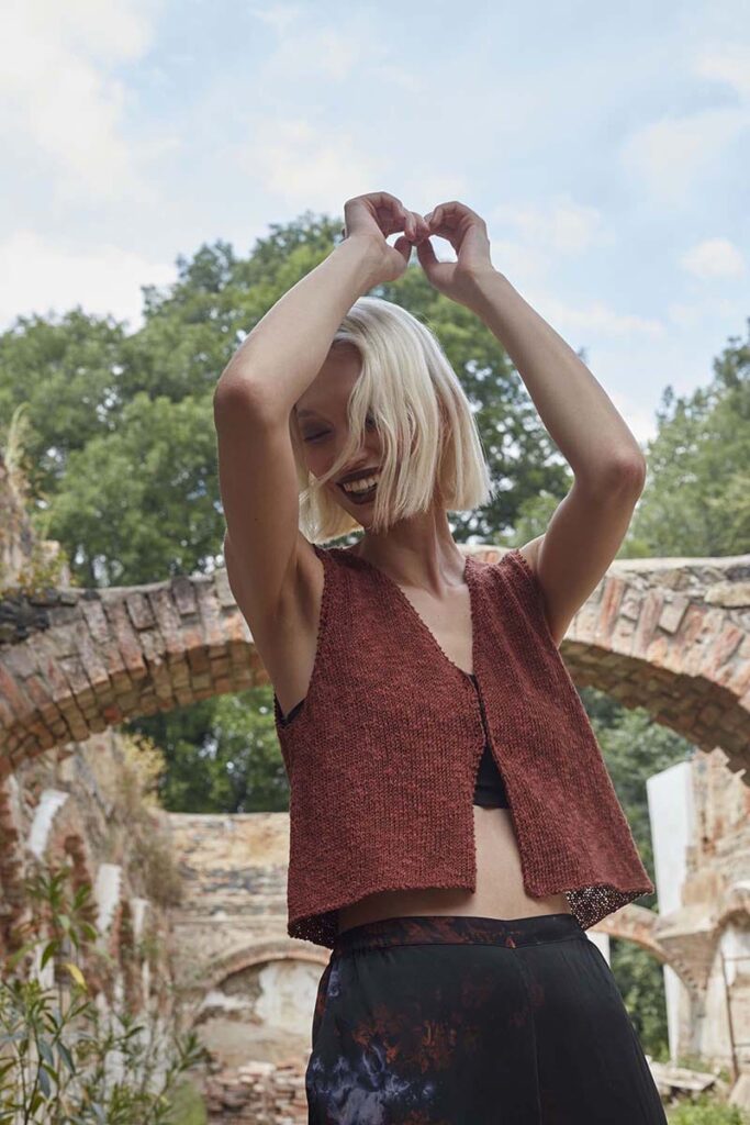 Make space, make room in your closet for this ultimate top. Great for when you go to a festival and the color: a fantastic brown one that everyone can super wear. It’s a super simple pattern and it will slips easily off your needles.