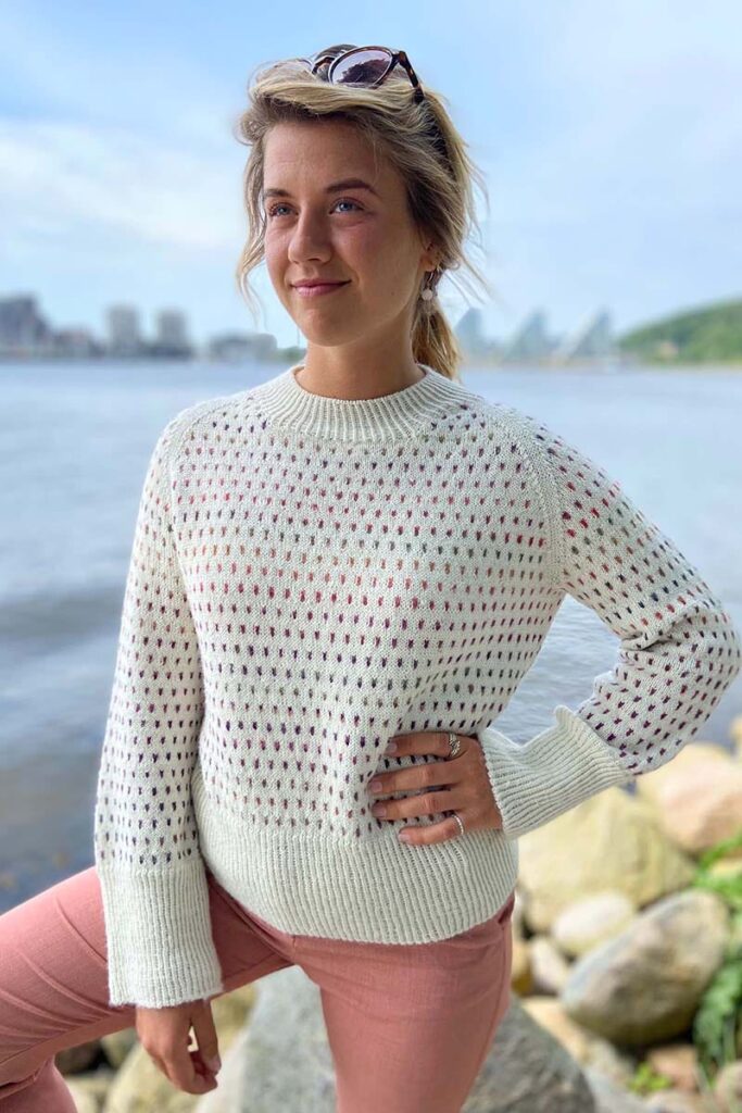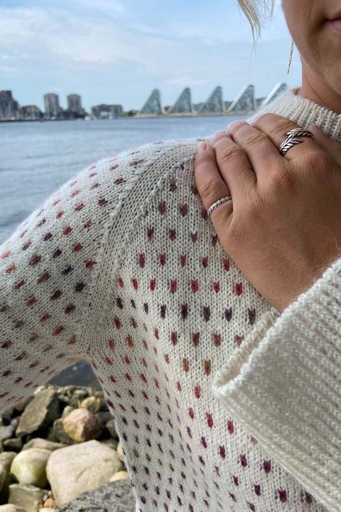 Wir präsentieren: NORDIC STARLIGHT von Sanne Lousdal ein Pullover, der die Magie des nordischen Himmels einfängt mit seinem kleinen, einfach zu strickenden Farbmotiv. Das zarte Muster funkelt und verändert die Farbe, ganz wie die Sterne, die über einer winterlichen Nacht strahlen.