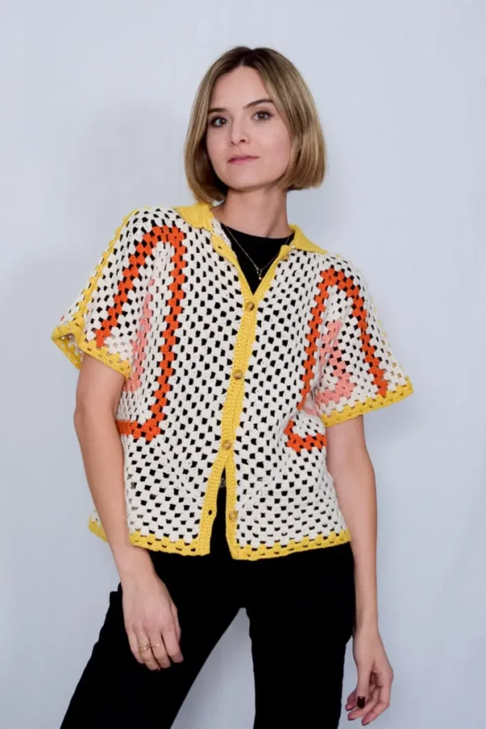 Besonders beliebt sind T-Shirt Hemden und Tops mit tiefen V-Ausschnitten, sowie Oberteile im Loch- oder anderem Spitzenmuster. Unter den Häkeltrends spezifisch sehen wir viele bunte Granny Squares Kombinationen. Sowohl beim Stricken als auch beim Häkeln sind bunte Streifen angesagt, besonders wenn gleich mehrere Farben kombiniert werden. Die Wolle- und Garnproduzenten haben sich ebenfalls von diesen Trends inspirieren lassen und ganz viele neue tolle Farben und Materialien eingeführt. Wir haben im Folgenden für dich passende Garne und Anleitungen kuratiert, damit du stylisch durch den Sommer 2024 gehen kannst.