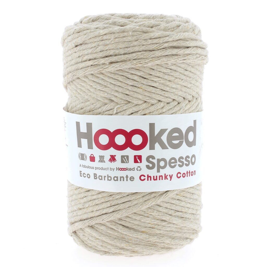 Hoooked Spesso ist ein super dickes Makrameé Baumwollgarn, mit dem Sie die schönsten DIY Kreationen anfertigen können. Dieses weiche recycelte Baumwollgarn hat eine positive Auswirkung auf den Umweltschutz, da es aus ungefärbten, recyclierten Baumwollfasern ohne jeglichen Verbrauch von Wasser angefertigt wird. Spesso Chunky Baumwollgarn ist in fantastischen Farben erhältlich und eignet sich perfekt als Makrameé Garn, genauso gut aber auch für XL Strick-, Häkel-, oder Webarbeiten. Mit diesem weichen Baumwoll-Ropegarn fertigen Sie grossartige DIY Projekte mit den glattesten Makrameé Knoten und den weichsten Fransen an.