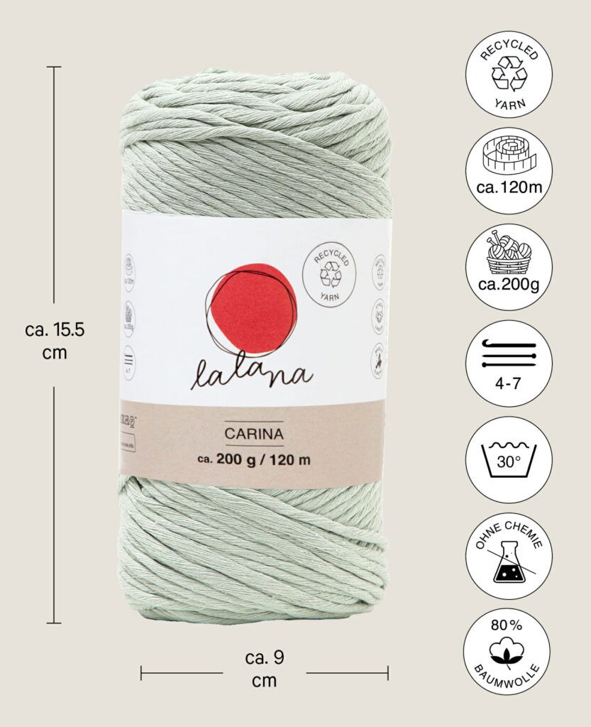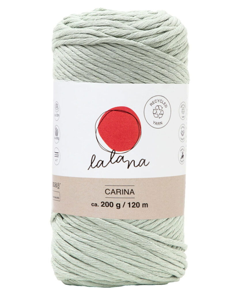 lalana Carina ist ein weiches und flexibles Garn. Das angenehme Carina Garn mit losen Fäden eignet sich für fast all deine Projekte, häkeln, stricken, Makramee ist alles möglich.