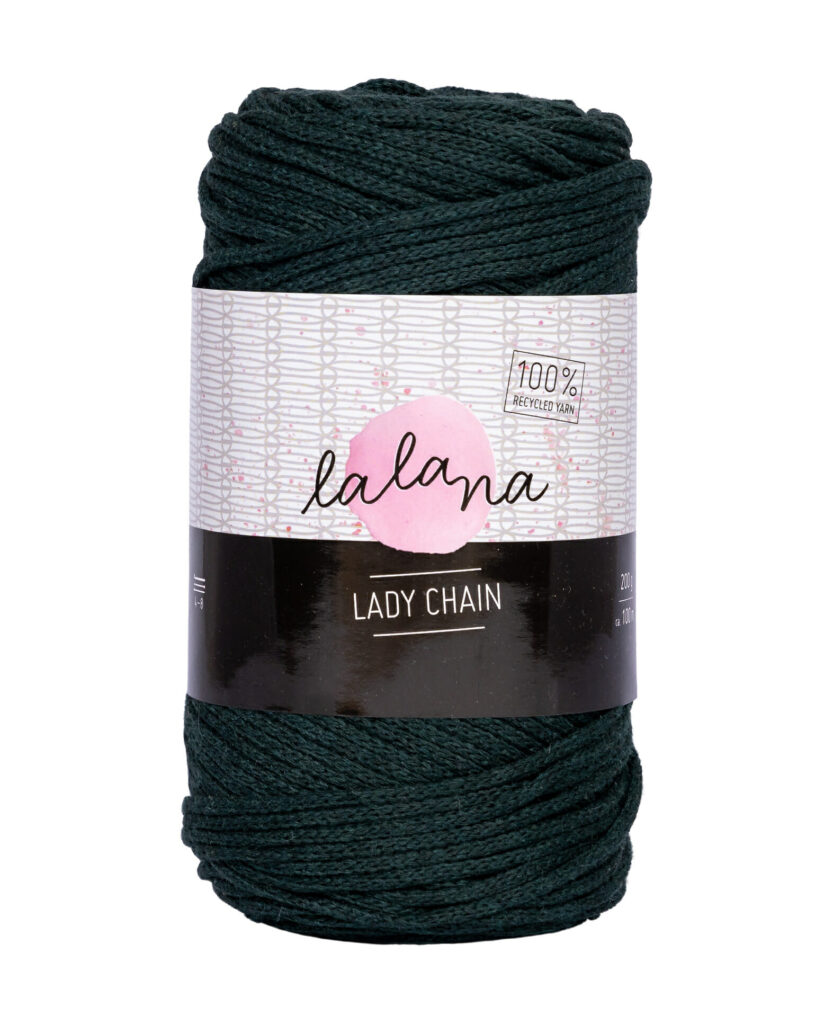 lalana Lady chain ist ein Kettengarn mit dem alles gemacht werden kann. Häkeln, stricken, knüpfen in schönster Farbenpracht. Es ist ein leichtes recycletes Garn aus 80% Baumwolle und 20% Mischfasern