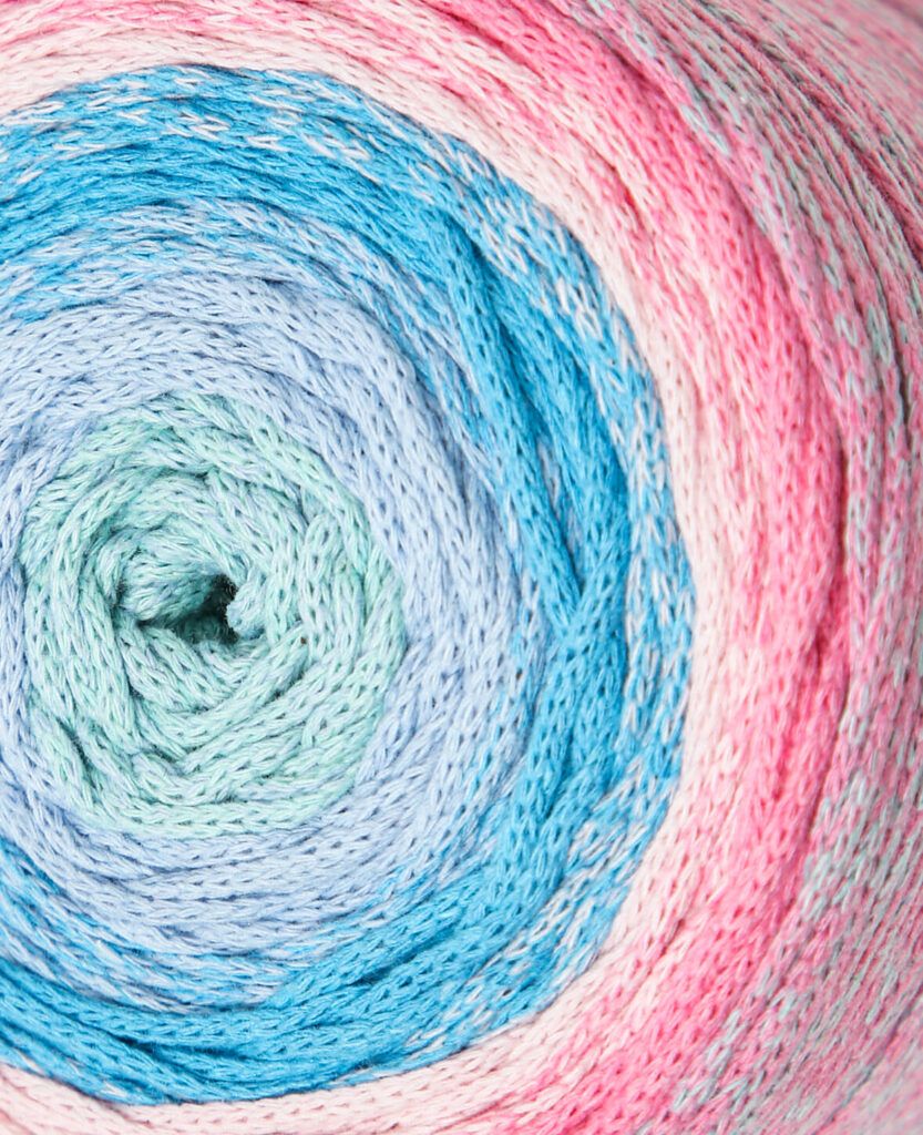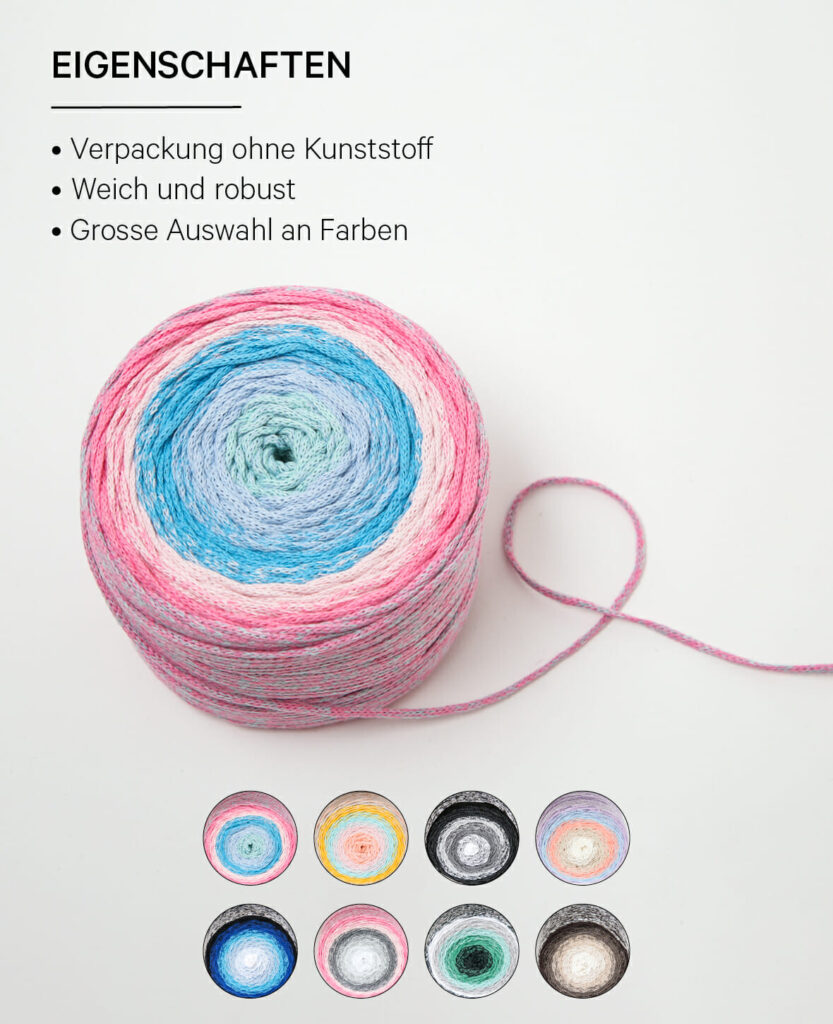 lalana vivace ergibt super schöne Farbverläufe! Das receyclete Garn aus 80 % Baumwolle und 20 % Mischfasern ist softig weich und hervorragend zur Verarbeitung von Häkel- Stricktaschen, Schals, Decken usw.