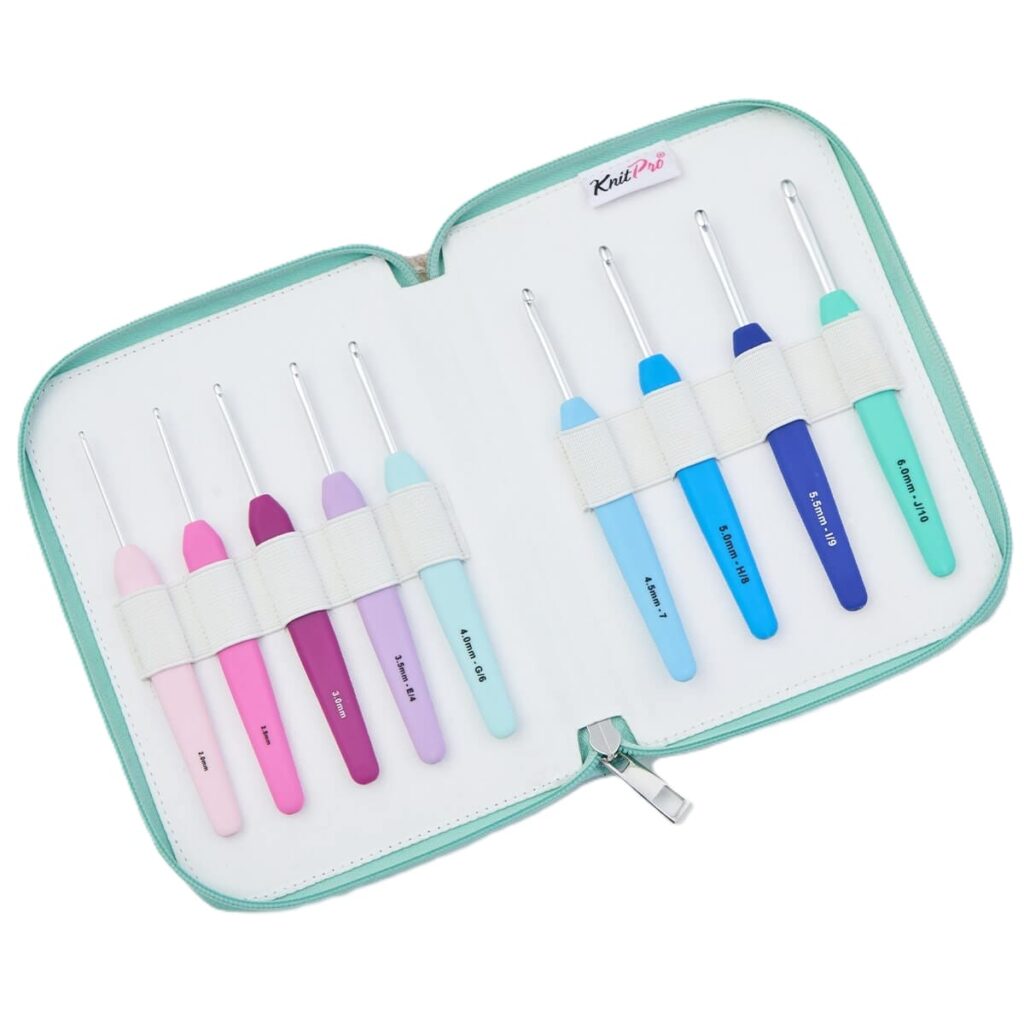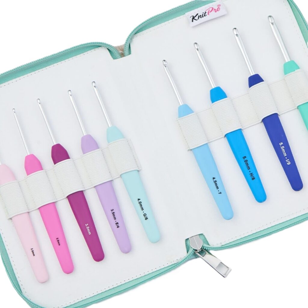 Das Waves Deluxe Set bietet eine grosszügige Kollektion von 9 Aluminium-Häkelnadeln in den Grössen 2.0 – 6.0 mm. Die glatten Aluminiumhaken ermöglichen ein komfortables Häkeln. Das ergonomische Design der bunten Gummigriffe passt bequem in die Hände. Die farbcodierten Griffe sind zur einfachen Identifizierung und werden individuell, jede an ihrem Platz gehalten. Das Set hat gängige Häkelnadelgrössen, die für eine Vielzahl von Projekten geeignet sind, was sie sowohl für Anfänger, die gerade erst mit ihrem Häkelabenteuer beginnen, als auch für erfahrene Häkelnde, die nach hochwertigen Werkzeugen suchen, ideal macht.