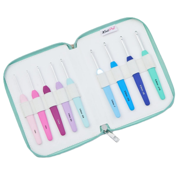 Das Bequest Tunisian Crochet Set beinhaltet die 6 meist gebrauchten Häkelnadelgrößen mit Zubehör.