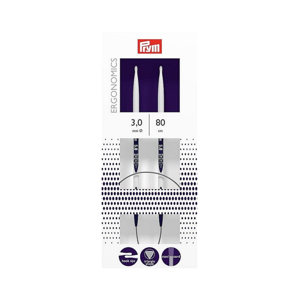 Die innovativen Rundstricknadeln prym.ergonomics gestalten das Stricken einfacher, angenehmer und schöner. Sie sind aus hochwertigem High-Performance-Kunststoff gefertigt und leicht biegsam, d. h. sie schwingen beim Stricken mit. Das Material gewährleistet auch leises Stricken, sodass keine Klappergeräusche entstehen. Durch die tropfenförmige Spitze sind die Stricknadeln prym.ergonomics auch für Anfänger gut geeignet, denn die Fadenführung ist deutlich einfacher und das Garn rutscht nicht so schnell von der Spitze. Durch die sich verändernde Form der Nadeln – rund zur Maschenbildung hin zu einem dreieckigen Querschnitt – gleiten die Maschen leicht über den Nadelkörper. Das stabile, sehr feine Stahlseilchen der Rundstricknadeln ist mit hochwertigem Kunststoff ummantelt. Hier gibt es keinen Spiraleffekt, das Seilchen verwickelt sich nicht: So können die Hände einfach nur das tun, was sie möchten – nämlich stricken. Die innovativen Rundstricknadeln wurden mit dem Red Dot Design Award 2016 ausgezeichnet.