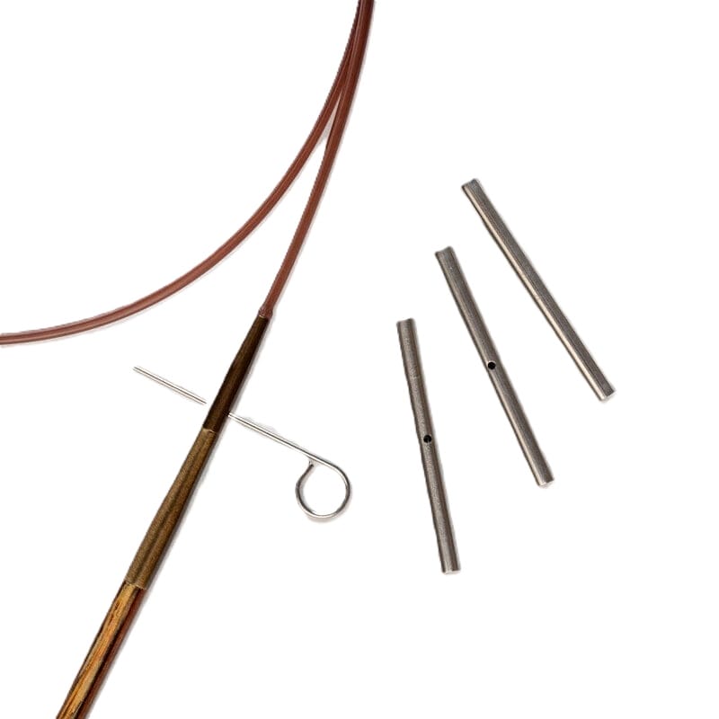 Nützliches Tool zum Verbinden zweier Seile, was vor allem bei umfangreichen Strickteilen vorteilhaft sein kann. Sie besitzen ein extra hierfür vorgesehenes Anziehloch für besonders sicheres Befestigen.