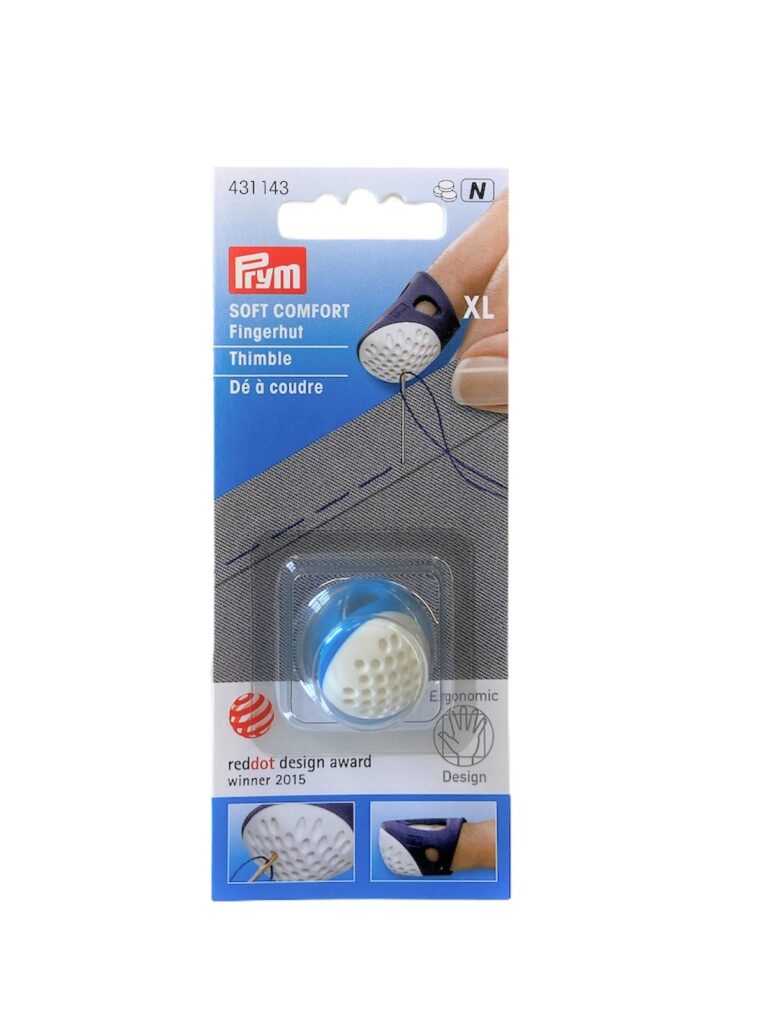Wer meint, dass ein so simples Nähutensil wie der Fingerhut nicht weiter entwickelt werden kann, wird durch den ‚Soft Comfort‘ aus der Serie prym.ergonomics positiv überrascht. Dieser innovative Fingerhut wurde 2015 mit dem Red Dot Design Award ausgezeichnet, denn er bringt alles, was seinesgleichen können muss, perfekt auf den Punkt. Sein Schaft aus weichem Kunststoff in mehreren Farben bietet einen tadellosen Tragekomfort in den Grössen S, M, L und XL. An seiner Seite befinden sich vier Lüftungsschlitze, die bei längerem Arbeiten das Schwitzen verhindern. Die Kuppe des Fingerhuts ‚Soft Comfort‘ besteht aus hartem weissem Kunststoff und verfügt über punktförmige Einkerbungen, die auch bei festen Soffen und mehreren Lagen eine perfekte Nadelführung gewährleisten.