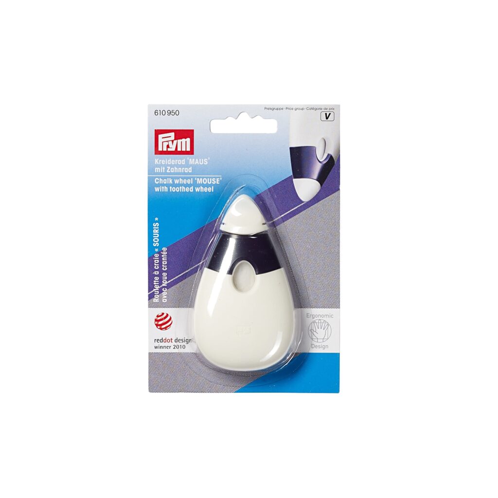 Das Kreiderad „Maus“ aus der Serie prym.ergonomics eignet sich bestens zum freihändigen Anzeichnen und Markieren auf allen Stoffen. Das feine Zahnrad an der Spitze des mausförmigen Kreiderädchens hinterlässt einen gut sichtbaren feinen Kreidestrich, der mühelos nach dem Nähen wieder aus dem Stoff ausgebürstet oder -gewaschen werden kann. Durch ein Sichtfenster kann der Kreidestand der Patrone immer im Blick gehalten werden. Die nachbestellbaren Ersatz-Kreidepatronen sind mit weißem oder gelbem Kreidepulver erhältlich. Das angenehm in der Hand liegende ergonomische Gehäuse der Kreide-Maus gewährt ermüdungsfreies Arbeiten. Eine griffige Kappe verschließt das Kreiderad zuverlässig. Nicht aus Zufall wurde dieses praktische Kreiderädchen im Jahr 2010 mit dem Red Dot Design Award ausgezeichnet.